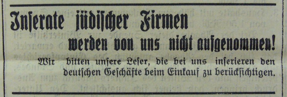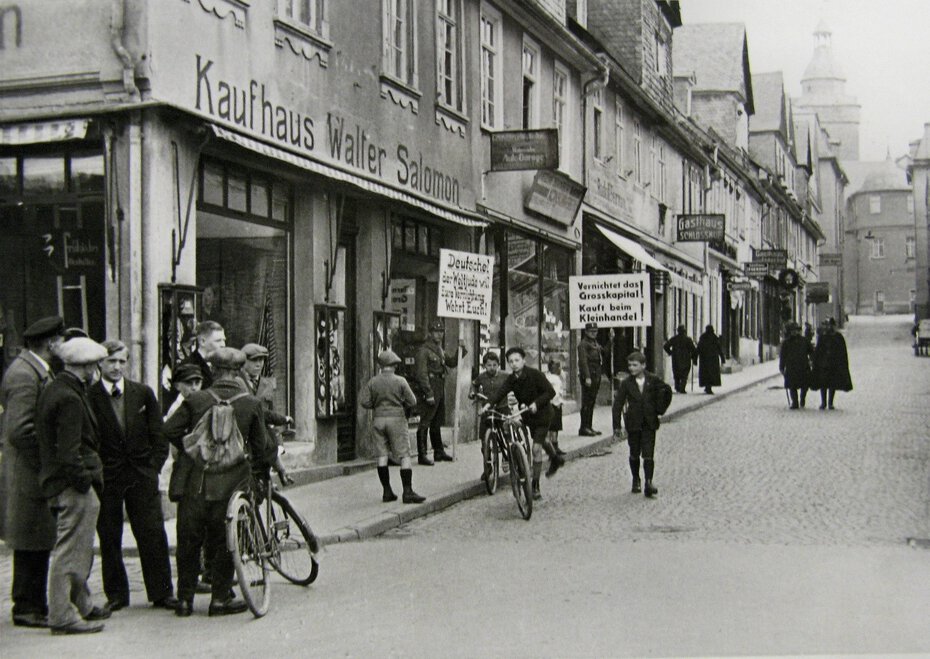 Die Lage der jüdischen Geschäfte begann sich ab 1933 zusehends zu verschlechtern, sie wurden in immer stärkerem Maße von den Käufern gemieden, die zahlreichen Boykottaufrufe im Weilburger Tageblatt zeigten Wirkung. Anfang 1938 gab es nur noch 2 jüdische Geschäfte: das Textilgeschäft Arnstein/Wallach und das Schuhgeschäft Falk, die aber ihren Geschäftsbetrieb im Laufe des Jahres 1938 auch einstellten.